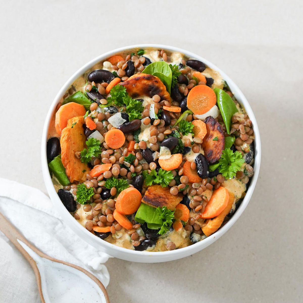 #1 Vegane Fertiggerichte. Feldfrischer Genuss, zu Dir geliefert und in Minuten zubereitet.