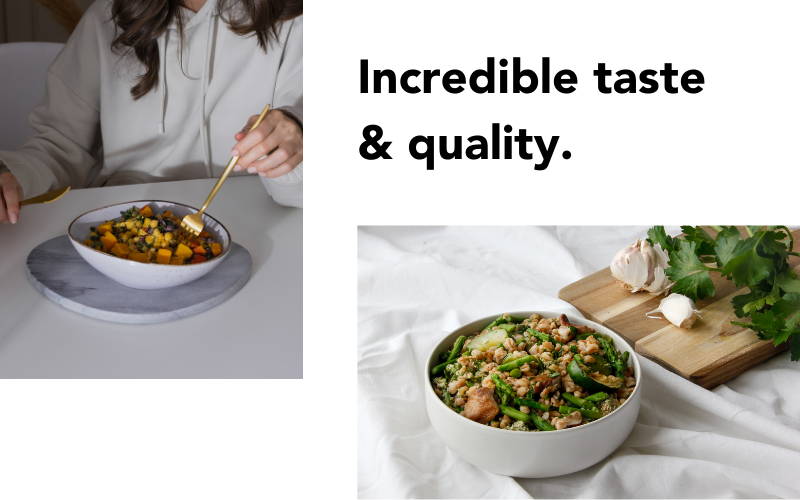 Our bowls can be prepared in either a pan or microwave. Simply warm them up for about 8-10 minutes – you will find precise preparation instructions on the packaging of each meal.